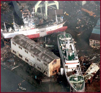 The protective harbor gate failed to shut and 45 firemen where swept away while attempting to close them manually. ( http://www.youtube.com/watch?v=ScjHs9bClyc )