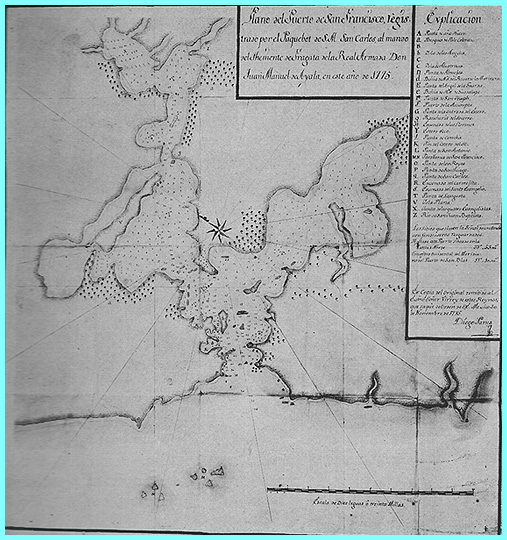 First survey and map of the Bay of San Francisco by Lt. Ayala (from original drawing attached to the Log of the San Carlos at Archives of Seville)