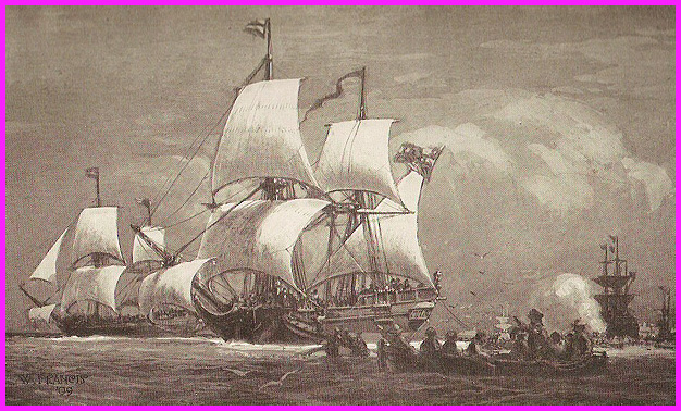 The Departure of the Spanish Ship San Carlos from the Port of La Paz on January 10, 1769, under the command of Don Vicente Vila, for a voyage to California (Modified graphic from original 1909 drawing by W. Francis)