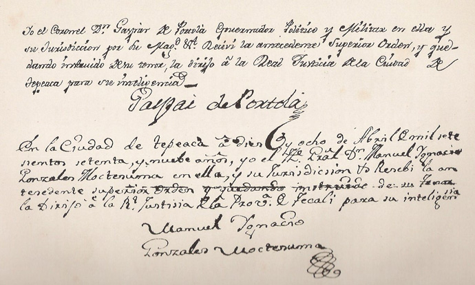 Spaniard Gaspar de Portola signs agreement (original document from the Archives of Seville)