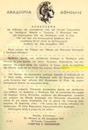 heroine Lela Carayannis, head of the Bouboulina Intelligence