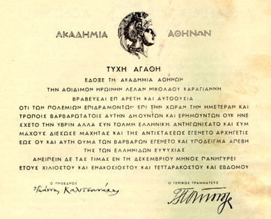 and Medals of Valor awarded after her death to Greece's national